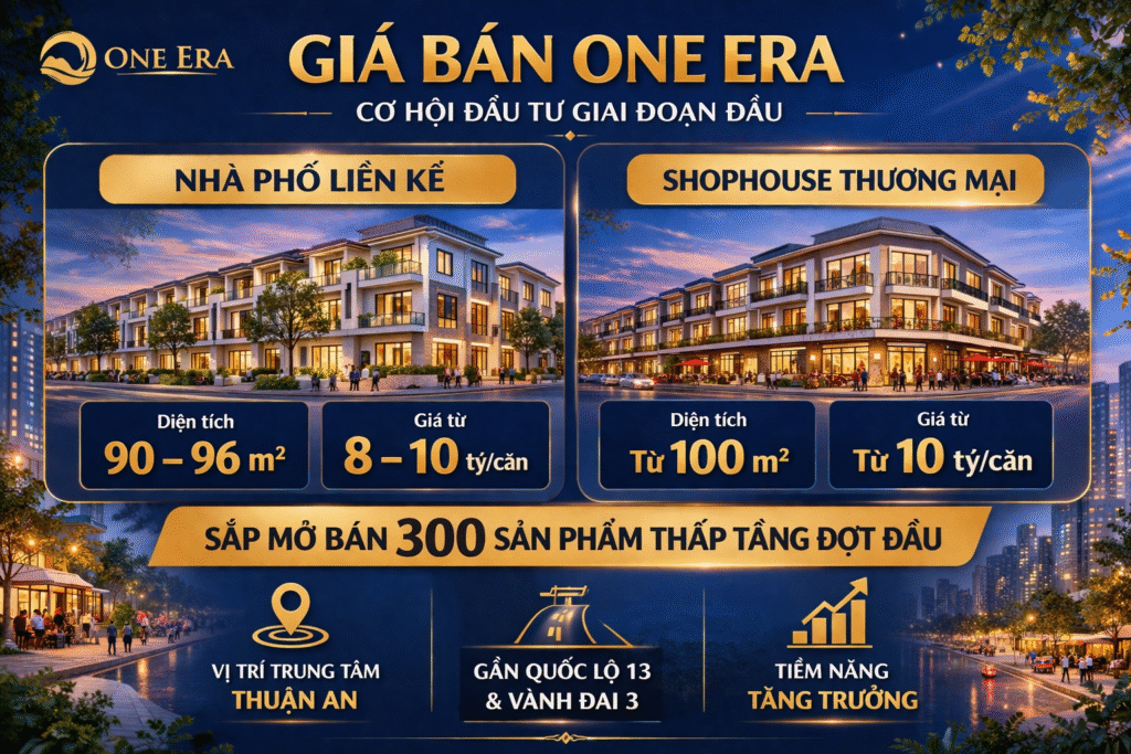 Với lợi thế nằm tại khu vực phát triển năng động, kết nối trực tiếp các trục giao thông lớn như Quốc lộ 13 và Vành đai 3, giá bán One Era được đánh giá còn nhiều dư địa tăng trưởng, hứa hẹn tạo sức hút lớn ngay từ những đợt mở bán đầu tiên.